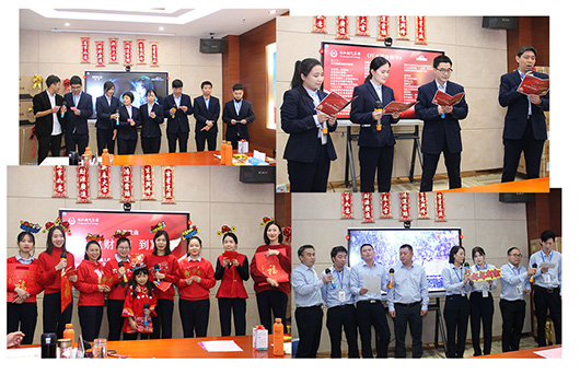 由集团行政人事部精心准备的各种新春饰品及贺年春联,将年会现场及公司内外装扮一新,散发着浓郁的“中国年”味。准备的年会奖品、礼物层叠堆码,一字排开,让进入会场的每位同事都不禁发出阵阵惊叹,希望自己能抽取大奖。下午15时整,集团领导及同事们齐聚一堂,翘首等待年会的开始。年会活动分三部分内容,第一部分是董事长、管理代表和员工代表分别致新春祝福,第二部分为各部门贺岁表演节目,第三部分是幸运抽奖。