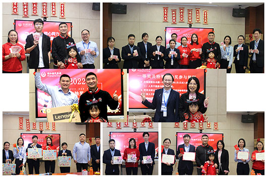 随着最后一个部门表演结束,各节目现场评分及线上成绩统计结果也随之完成,获奖名次也一一公布,董事长牛正峰先生为节目获奖部门分别颁发了奖金和奖状。最后,董事长牛正峰先生,董事萧辉兰女士与同事一起愉快合影留念,让我们期盼明年再欢乐相聚。