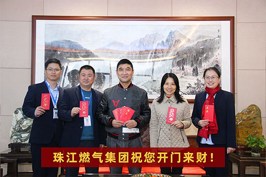 珠江燃气集团董事长牛正峰先生,一早准备了开门红包,为每位员工派发开工利是。总部员工列队整齐一一向董事长送上祝福语,并领取红包。